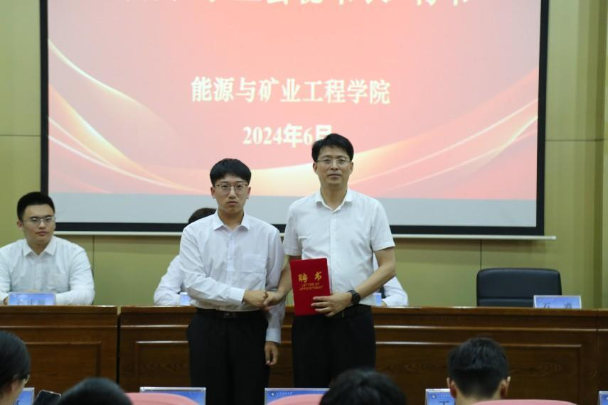 会上,石睿向新一届琉璃神社 学生会秘书长周尚涛颁发聘书。