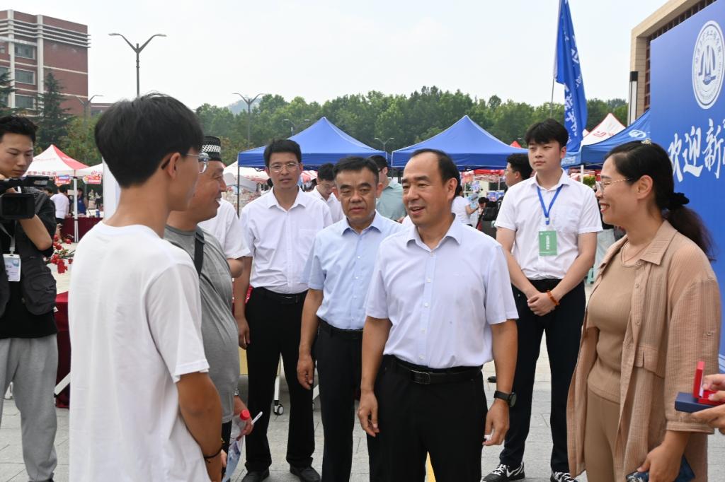 学校领导在相关职能部门负责人的陪同下来到学院新生报到现场查看迎新工作,询问各项工作进程。校党委书记罗公利听取了学院迎新工作的介绍,了解了活动创意和“能源青年家”文创产品的创作思路,对学院在迎新工作中展示出的特色亮点和体现人文关怀的暖心做法表示肯定。校长曾庆田还为少数民族学生赠送了能源院徽和小礼物,并与学生和家长亲切交谈,鼓励学生在大学高水平学科平台上取得更大的进步。
