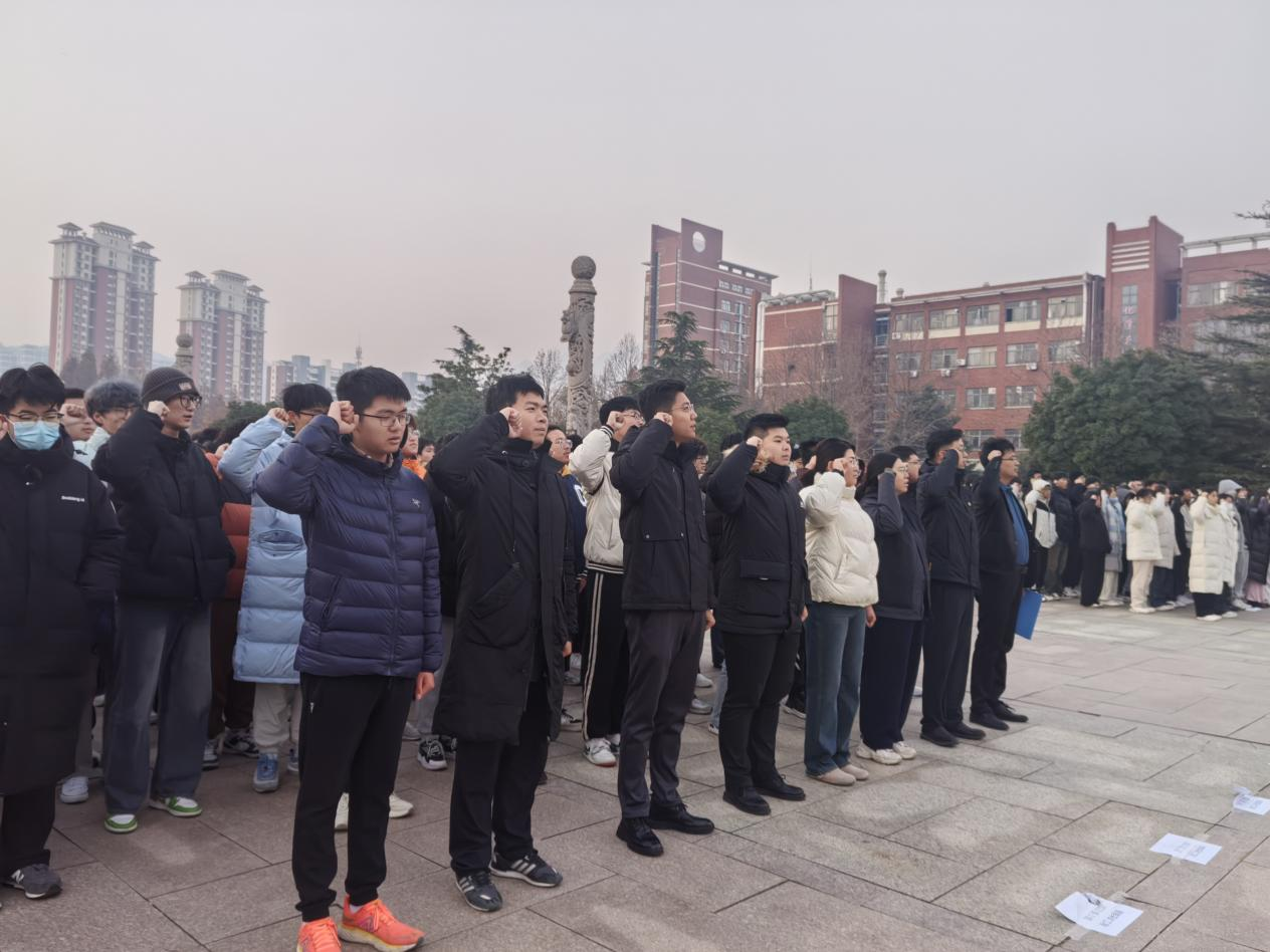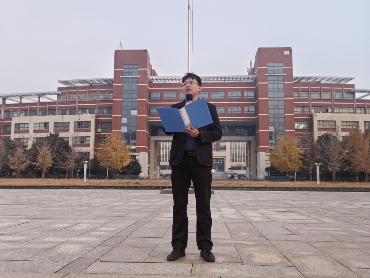 周尚涛在国旗下发表演讲,在演讲中呼吁能源学子接过历史的接力棒,继承并发扬“一二·九”运动爱国精神,胸怀远大理想,勇攀科学高峰,为能源与矿业事业贡献自己的智慧和力量。2024级本科生代表王呈宇、李泽华发表了主题为“祭先驱热血,谱时代华章”的演讲,歌颂革命先烈的光荣事迹和崇高精神,激励青年学子铭记革命历史,坚定理想信念,担当新时代的青年使命。最后,由学生代表何文贤带领全体参会人员现场宣誓,发出“请党放心,强国有我”的坚定誓言。