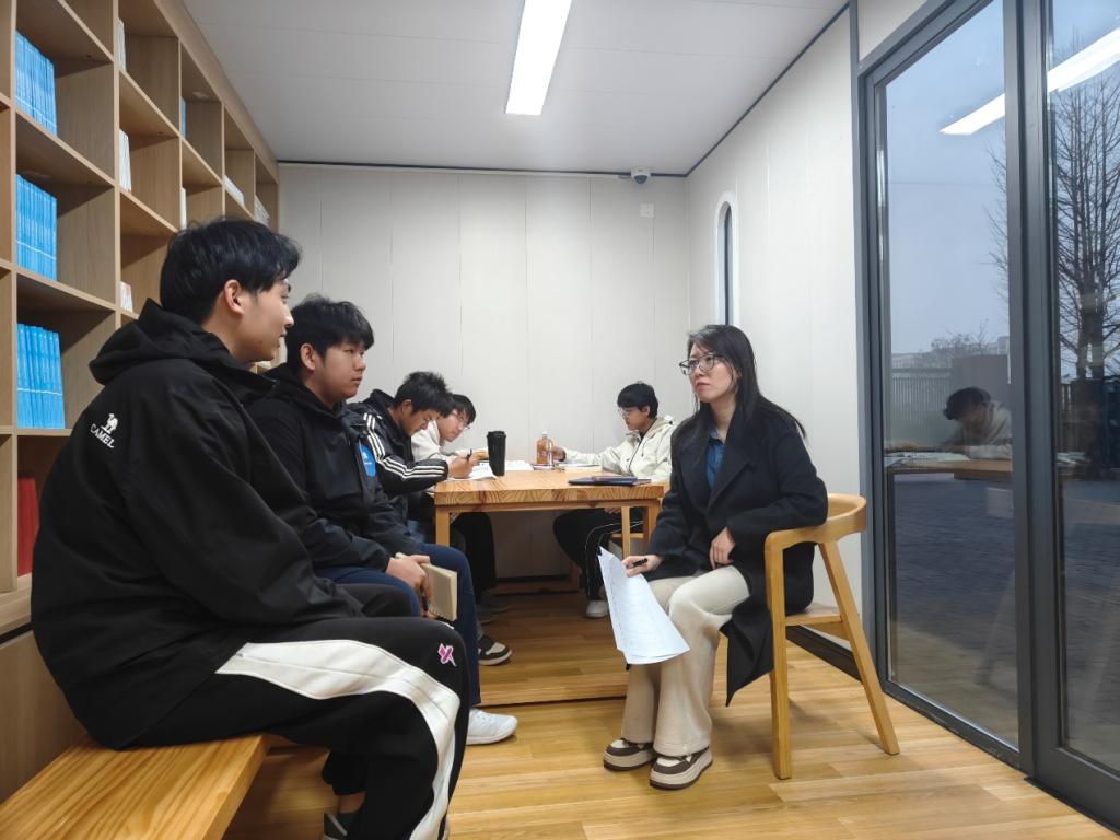 宣传部副部长韩韬略听取了班委们关于班级管理和团组织建设有关情况的汇报,对班委们的工作给予充分肯定,强调了班集体建设的重要性和团支部的引领作用,对后续工作提出了建议,并就思想引领、学风建设等与同学们进行交流。