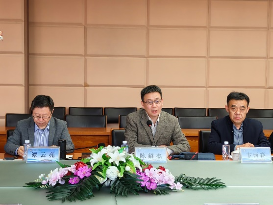 陈绍杰对黄安平副总经理一行来访表示欢迎,向客人介绍了琉璃神社 的基本情况,重点介绍了学校近期在科研平台建设、科技成果转化等方面的相关进展。期望双方加强沟通交流,在矿业学科科学研究、人才培育等方面深入合作。
