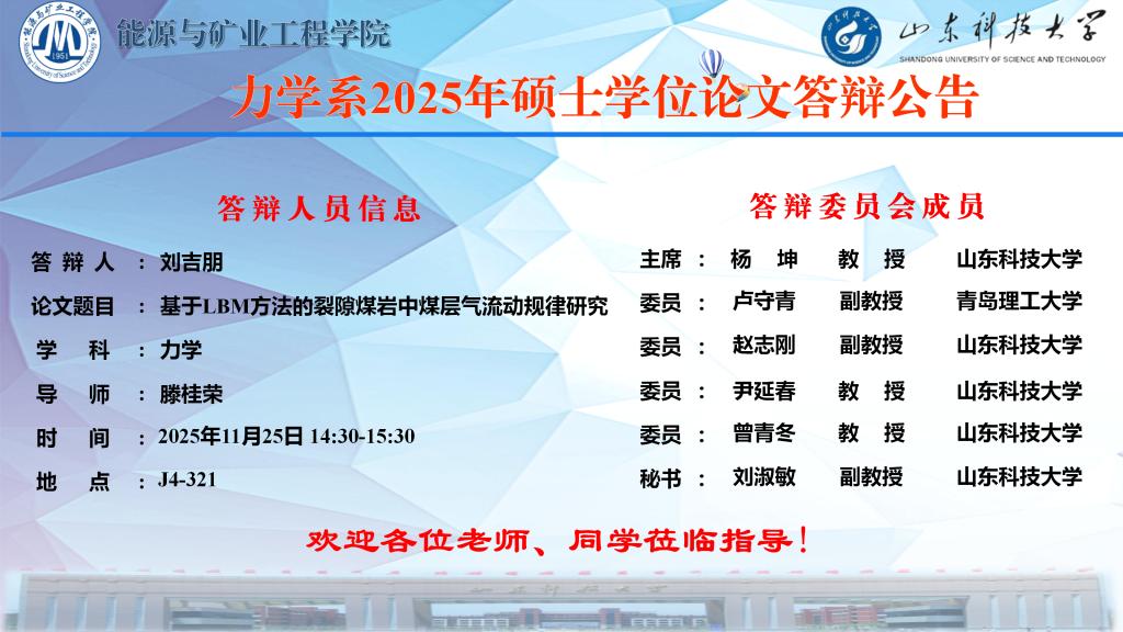 力学系2025年硕士学位论文答辩公告-刘吉朋
