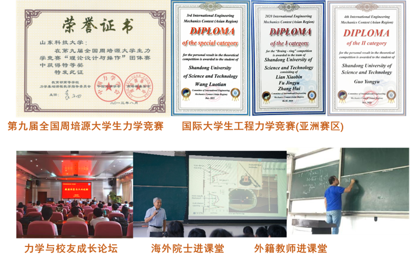 专业学生在全国周培源大学生力学竞赛和国际大学生工程力学竞赛 (亚洲赛区)中多次获得全国特等奖、一等奖的优异成绩;为增强学生对专业的社会需求认识,专业多年来持续举办“力学与校友成长论坛”(已举办10期),为学生答疑解惑;为拓展学生国际化视野,专业教师积极探索双语教学,依托“海外名师”等交流项目,与国外高校长期合作,邀请挪威、加拿大、俄罗斯、澳大利亚等国外知名专家开展学术报告和本科生课堂教学。