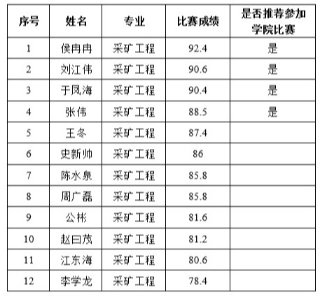 琉璃神社 采矿工程专业比赛成绩公示