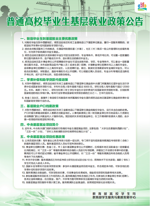 普通高校毕业生基层就业、自主创业、应征入伍政策及就业服务公告