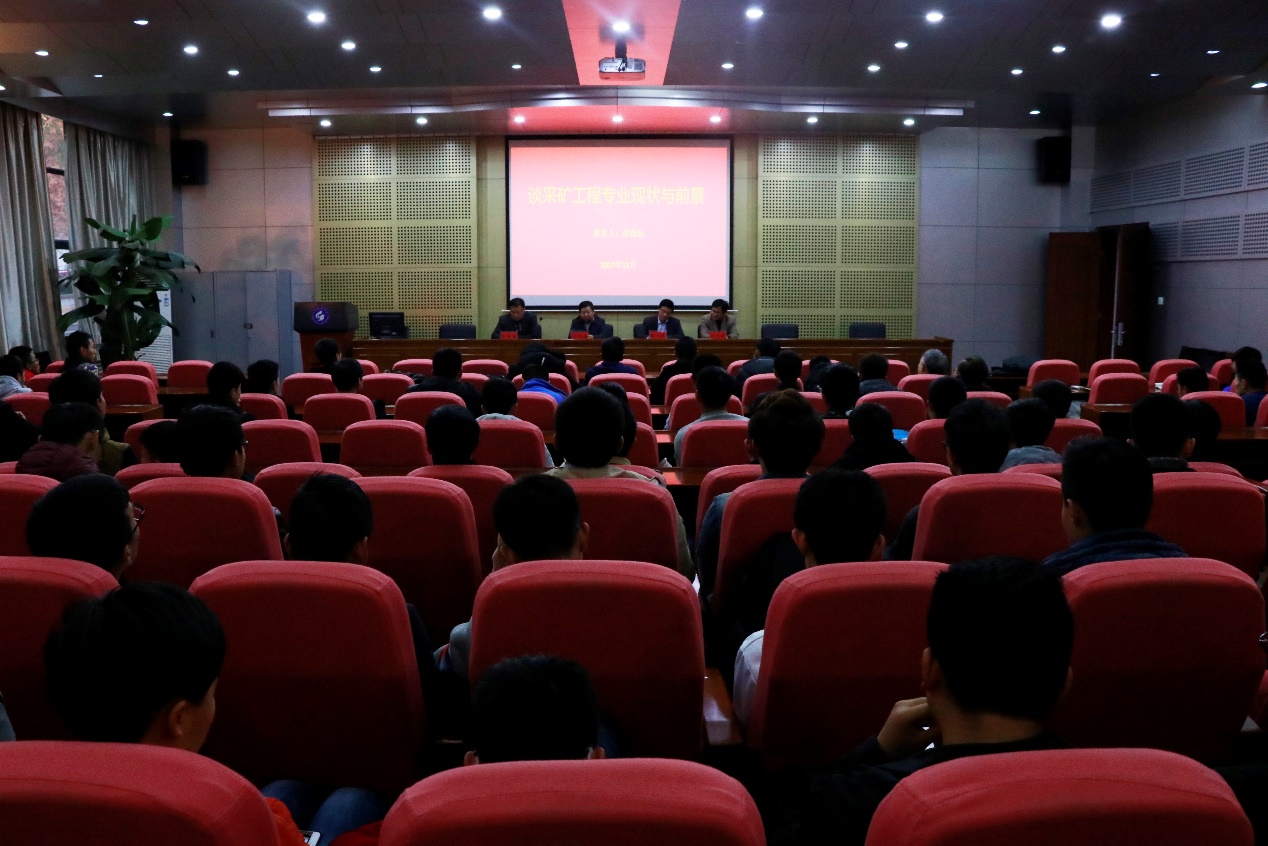 近日,矿业学院于学院楼101报告厅举办采矿工程专业现状与前景分析报告会,中煤五建第一工程处负责人肖西远担任主讲,矿业学院党委副书记兼副院长穆玉兵、采矿工程系主任张培森、副主任刘进晓应邀出席,采矿工程2017级新生参加报告会。