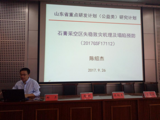 会上,院长助理陈绍杰从自身申请山东省重点研发计划(公益类)研究计划项目的经历出发,着重从申报通知、立项依据、研究内容和研究方案等方面对“石膏采空区失稳致灾机理及塌陷防治”进行了详细的阐述。同时,强调申报项目的方法思路、技巧,分享自身成功申请项目的全过程。