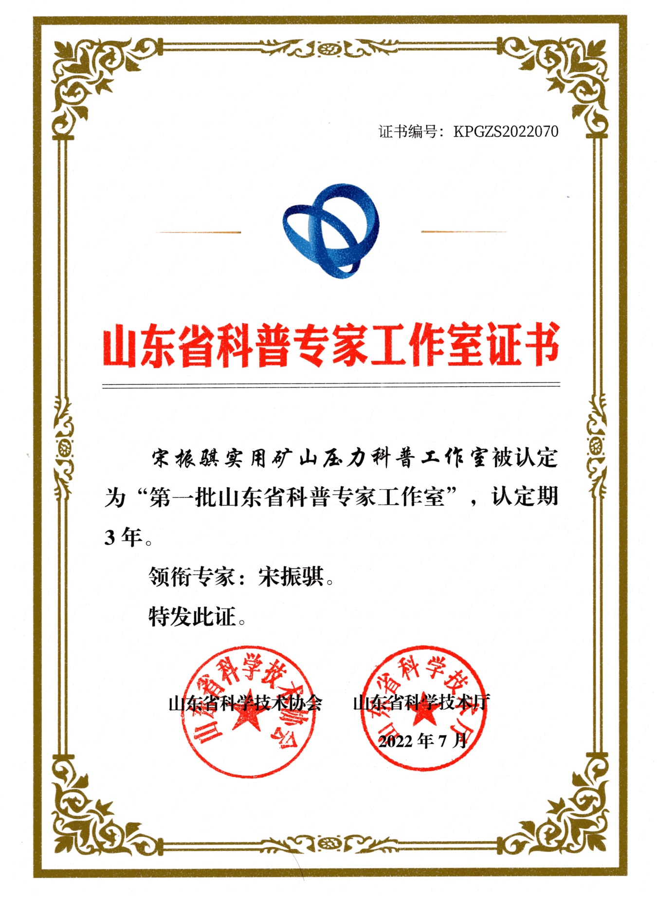 “宋振骐实用矿山压力科普工作室”入选首批山东省科普专家工作室名单