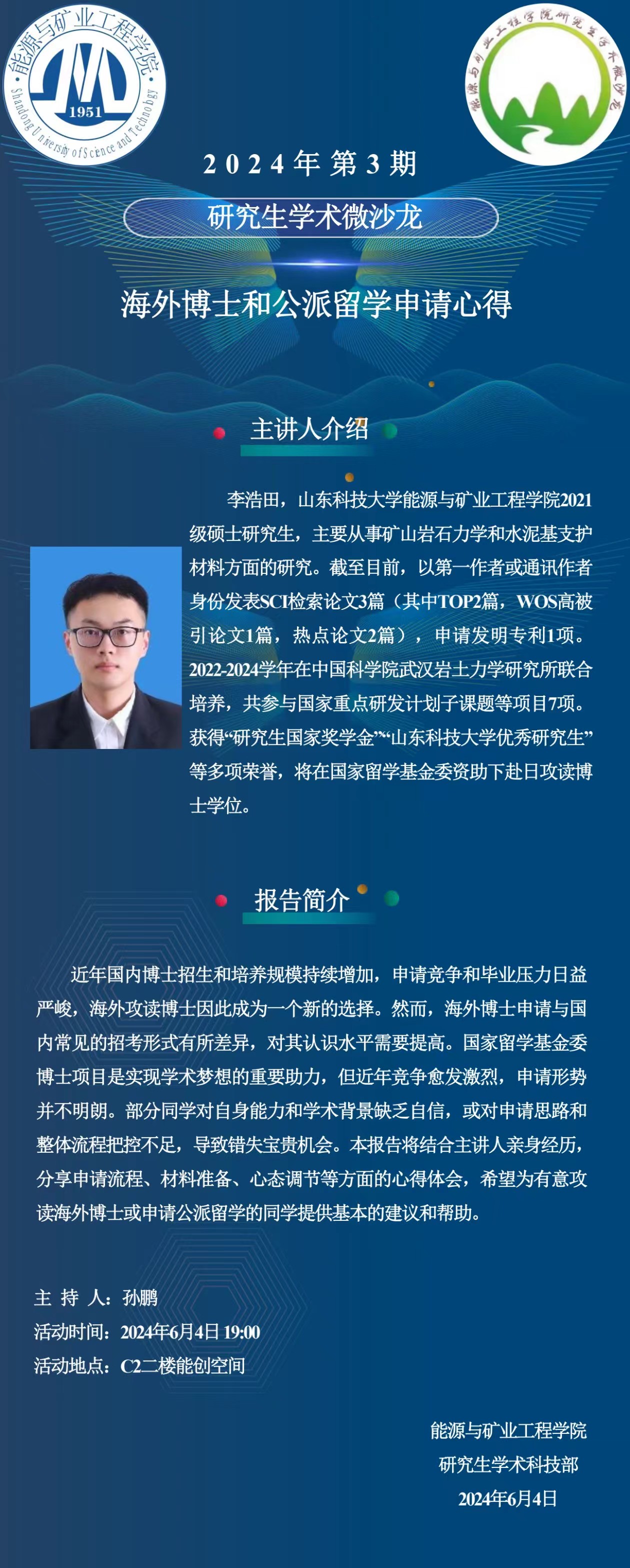 2024年第3期 研究生学术微沙龙 海外博士和公派留学申请心得