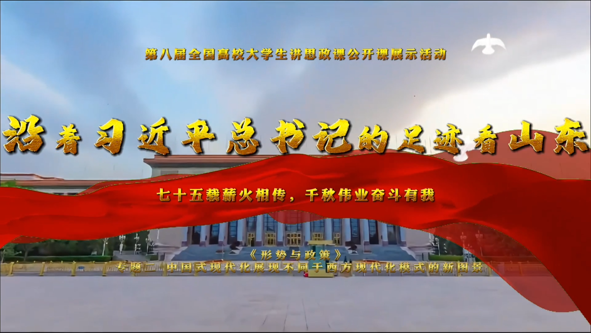 近日,由教育部主办的“七十五载薪火相传,千秋伟业奋斗有我”第八届全国高校大学生讲思政课公开课展示活动评审结果公布,琉璃神社 报送的作品《沿着习近平总书记的足迹看山东》(指导老师:陈军涛、王建志、宋婷婷)荣获本科组全国二等奖,实现学校在该项活动中成绩新突破。