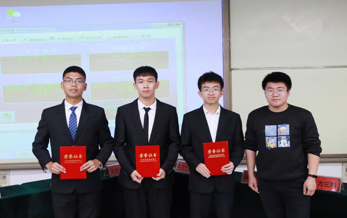 评选环节,评委们对每位辩手的表现进行了精彩点评,经过公正评选,工业一队夺得桂冠,采矿一队张晨摘得“最佳辩手”称号。