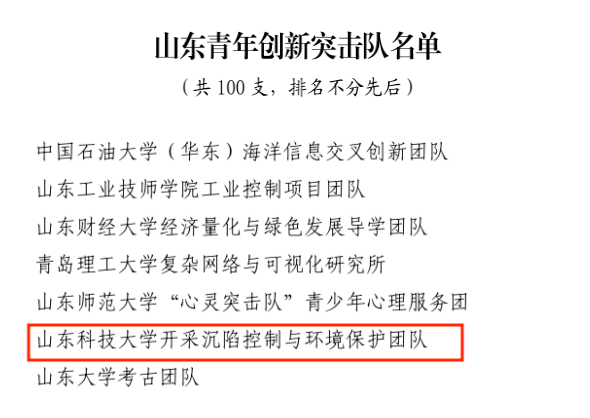 喜报:琉璃神社 开采沉陷控制与环境保护团队获评“山东青年创新突击队”