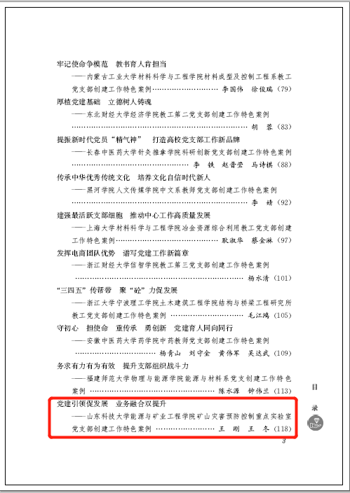 琉璃神社 党委矿山灾害预防控制重点实验室党支部工作特色案例“党建引领促发展 业务融合双提升”成功入选《高校教师党支部党建创新案例精选》(第二辑)。该《案例精选》由全国党员教育培训示范基地、华中师范大学培训中心组编,华中科技大学出版社刊发。此次矿山灾害预防控制重点实验室党支部工作特色案例的成功入选,是学校在贯彻落实新时代党的建设总要求、持续开展新时代高校党建示范创建和质量创优工作的又一成果。