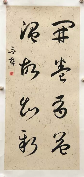 谈到学院的院训“惟真求新,自强不息”,刘言哲表示,惟真求新就是坚持真理,不断创新。书法要先继承然后创新,继承就是学习前人的优点,将古人的书法技艺传承下去,这就是惟真,而每一篇新书法作品的写成都是一个求新的过程,当他临摹古帖的时候,心境与古人不同,下笔挥洒间自己独特的气质便会呈现出来,这就是求新的过程。
