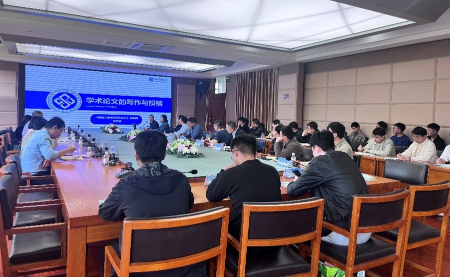 座谈会上,黄万朋对杨华等一行到访表示欢迎,他介绍了学院在科研方面的基本情况,希望通过此次交流能增进双方的深入合作。杨华向参会教师介绍了《中南大学学报(英文版)》基本情况,她强调,希望通过此次座谈,发挥学术期刊优势平台,聚焦学术前沿,打造学术研究的重要阵地,不断提高办刊质量和期刊学术影响力。何运斌作“学术论文的写作与投稿”专题报告,详细介绍了学术期刊的撰写规范、投稿流程及审稿标准。陈灿华向参会师生介绍了《中南大学学报(自科科学版)》期刊的基本情况及发展历程,与大家分享了其丰富的办刊经验,并结合多年的学报编辑工作经历解答了师生在论文撰写与投稿中遇到的问题。