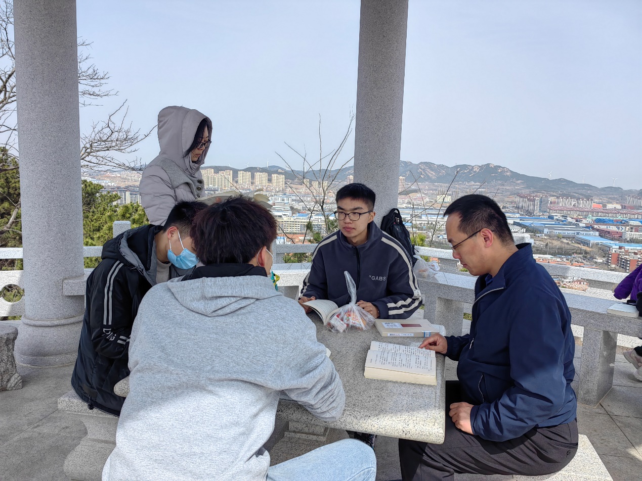 “莫春者,春服既成,冠者五六人,童子六七人,浴乎沂,风乎舞雩,咏而归”。伴随着一路的欢声笑语,呼吸着清新宜人的空气,大家兴致勃勃地来到笔架山顶,开始了共读《论语》的读书交流活动。