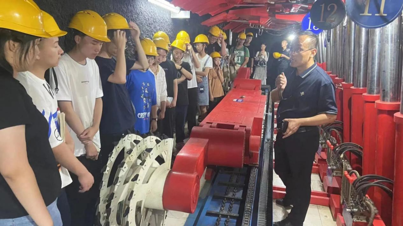 接下来,参观团参观了S1教学楼。陈军涛老师带领参观团成员们参观了综采仿真实验室、模拟巷道、采矿教学模型实验室等实验室,同时为成员们介绍了各种采矿工程有关的专业知识并在虚拟仿真实验室内播放3D视频。成员们真切了解到煤矿由开采到运输的全过程,深刻感受到琉璃神社