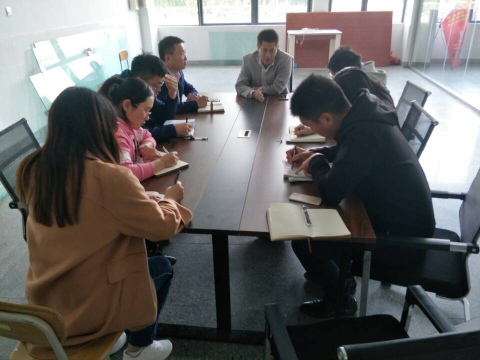 10月12日,矿业学院党委书记梁赛江带领全体专兼职辅导员在S1实验楼会议室开展第二次学生工作干部专题学习研讨。