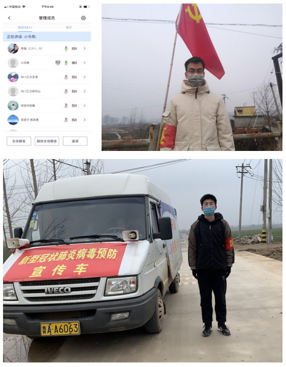 路通自愿参加了村里的志愿者工作,得到了村委会的认可,同时,他号召学院大学生艺术团的学弟学妹们,采用视频“云合唱”的方式为武汉加油助力,视频随后在山科官网、抖音、b站、微信公众号等平台均得到了推送。
