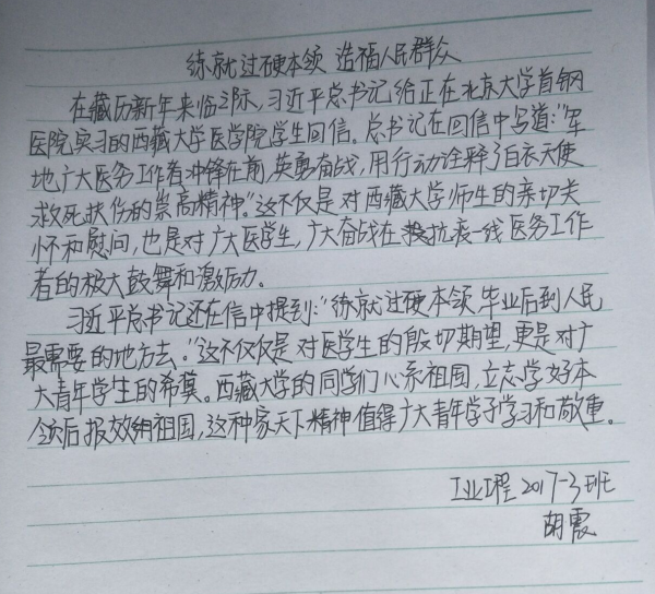 能源学子热议习近平总书记给在首钢医院实习的西藏大学医学院学生的回信
