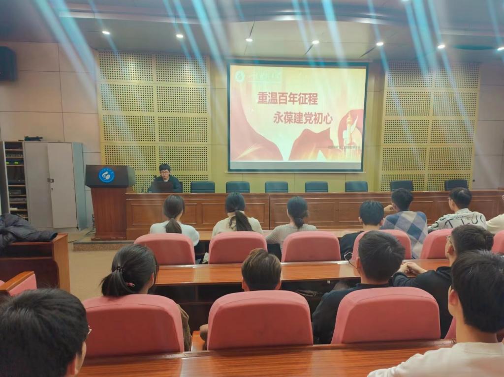 首先,团委周尚涛老师带着我们回顾了中国共产党的百年光辉历程。百年时光,中国共产党带领全中国人民把革命、建设、改革、复兴事业不断推向前进。回顾百年征程,从新民主主义时期的救国大业,到社会主义革命和建设时期的兴国大业,再到改革开放和社会主义现代化建设新时期的富国大业……过往种种壮举,依旧紧紧扣动着我们的心弦。