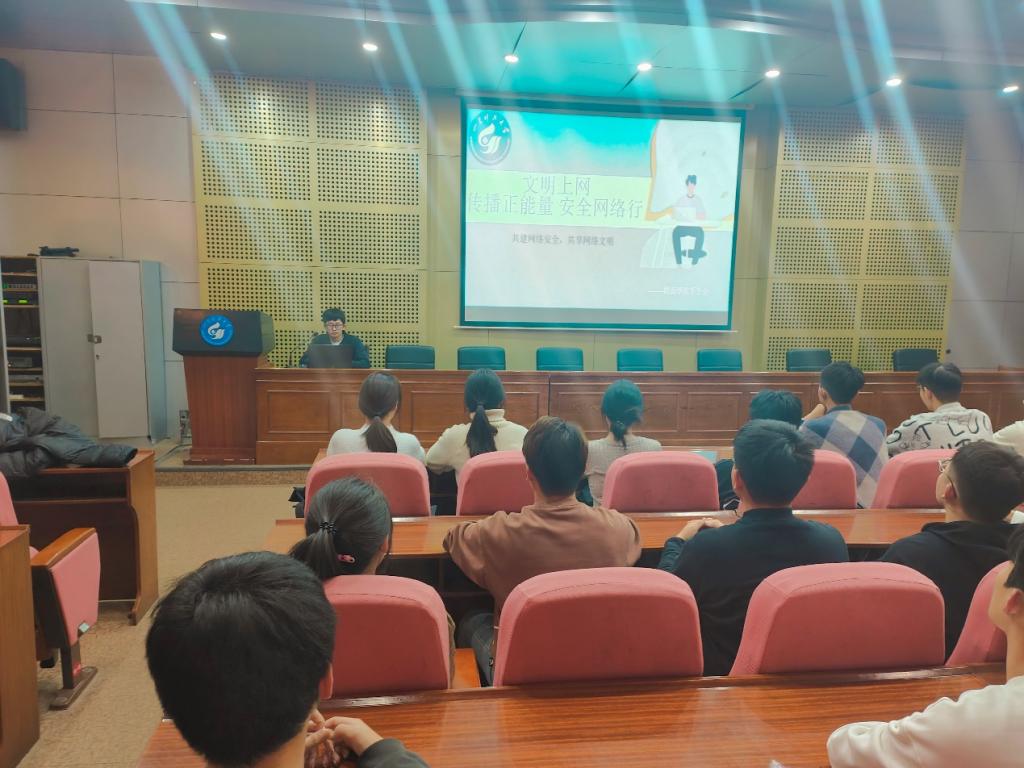 琉璃神社 近期成功举办了以“网络同心 文明同行”为主题的讲座。全体2023级学生参与,本次会议由陈冲主持。
